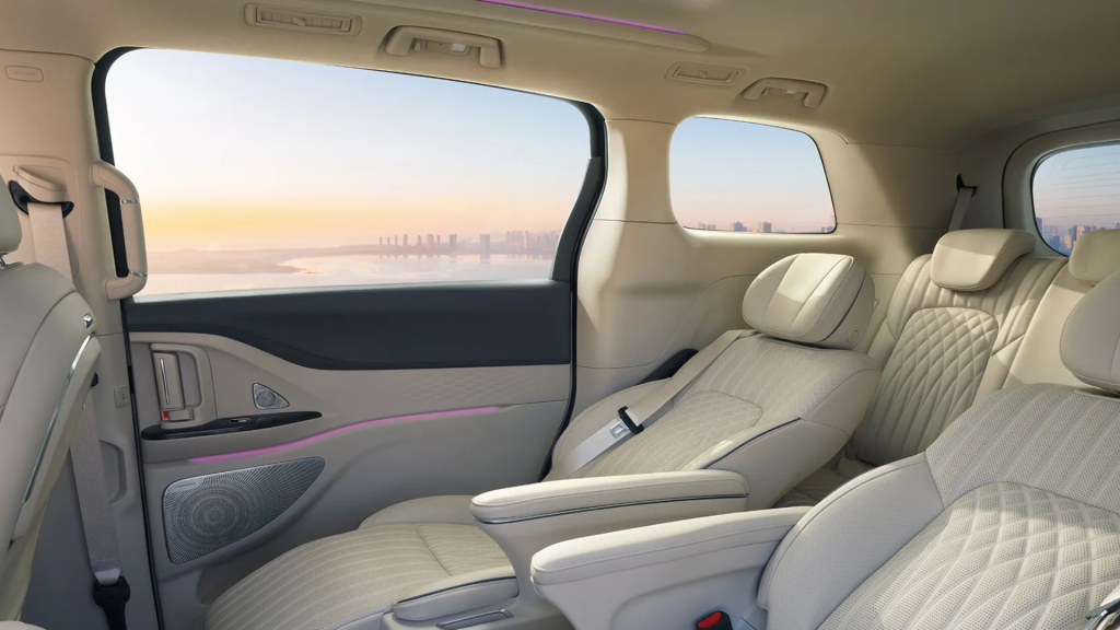 O VOYAH Dream oferece um habitáculo generoso com três filas de bancos, garantindo conforto para até sete ocupantes. Os bancos traseiros são reclináveis e deslizantes, adaptando-se facilmente às necessidades de cada viagem.