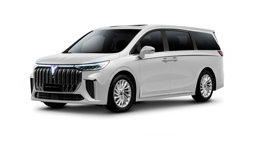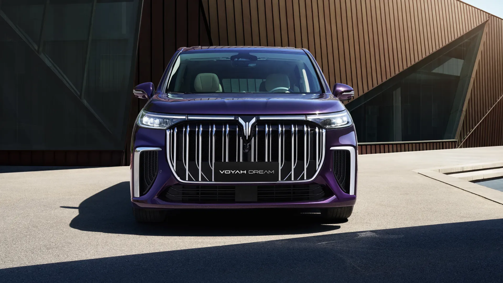 Com 5,31 metros de comprimento e linhas elegantes, o VOYAH Dream combina presença marcante com detalhes refinados. A grelha frontal cromada e os faróis LED conferem-lhe um visual moderno e distinto.